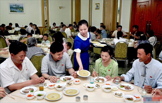 朝鲜最顶级的冷面馆——玉流馆。达官贵人的食场。价格对老百姓来说不菲,环境有点国宴的感觉,是政府官员宴请别人的经常之选。