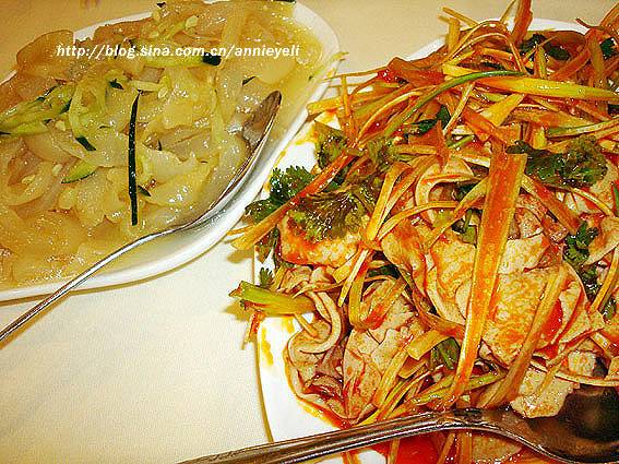 我们点了2瓶青岛啤酒。我敢说这家的拌海蜇皮和麻辣腰花是我吃到最美味的,海蜇皮好长腰花切得细薄。