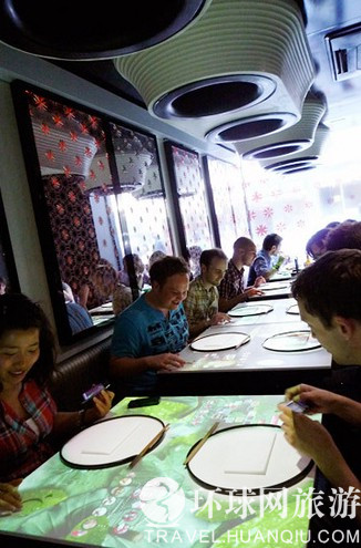 英国媒体日前报道,在伦敦最时尚的Soho区,你可以在沃德街找到一家带有浓厚亚洲气息的餐厅,你在这里不会因为等餐而无聊,还可以与朋友一起玩最先进的桌面互动游戏,甚至你还可以选择田园式的乡村景象来安抚情绪。所有的这一切,让这家名叫Inamo的餐厅座无虚席,因为这里采用的是触摸点餐系统,让人仿佛感觉进入到未来。