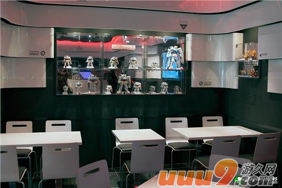 高达经典头像及所属军队标志被巧妙运用在了咖啡厅招牌上,并设立在店门及街头最为引人注目的地方。店内所有的摆设都与高达直接挂钩,在装潢设计上也采用了曲线式的未来化设计。同时店内还设置有各式各样的情报姿讯站,高达周边商品的展示柜台等。