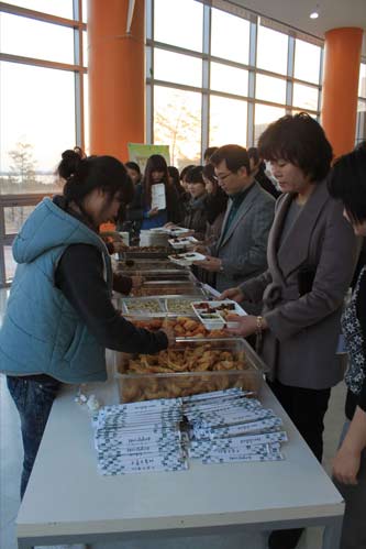 为展示正宗的中国美食,韩国仁川大学孔子学院特别邀请了中国特级厨师,为来宾准备了宫保鸡丁、糖醋排骨、干爆虾仁、蚝油青菜、饺子、烧卖、花卷等丰富多样的中国菜肴。来宾们不仅品尝到了中国四大菜系---淮扬菜、四川菜、山东菜、广东菜的代表菜肴,并且在孔子学院老师们的帮助下,亲手包起了饺子,体验到了中华美食文化带来的无限乐趣。