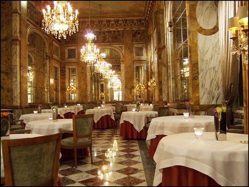 在巴黎找到一个浪漫的餐厅似乎不是一件很难的事情,但是既然法国人可以如此奢糜,你为什么不能也让自己奢糜一下在这个神殿里享受高级的法式料理呢?大使餐厅的历史可以追溯到1758年,这里的地板和墙壁都是由七种大理石装饰的,硕大的镜子让这里看起来更加宽阔。18号餐桌可以看到最美的巴黎协和广场。