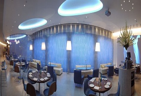 国外的设计显然更加“肆意妄为”,蓝白这么清冷的色调用在餐厅设计中,着实胆量过人。也许你无法想象,那就亲眼看一看,没有金碧辉煌,没有幽深暧昧,没有怀旧,没有现代,蓝白塑造出的冷静清醒,让人印象深刻。