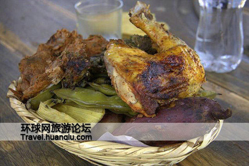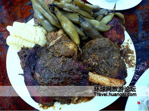 记者还在与老人交谈,同来的秘鲁朋友卡洛斯已排了半个小时队,买来一盘烤制好的帕恰曼卡:一块猪肉、一个鸡腿、一个土豆、一小块红薯和香蕉、玉米粽,再加上一小勺秘鲁特有的黄辣椒酱。热腾腾的食物散发着香气,也散发着秘鲁深厚的传统文化气息。