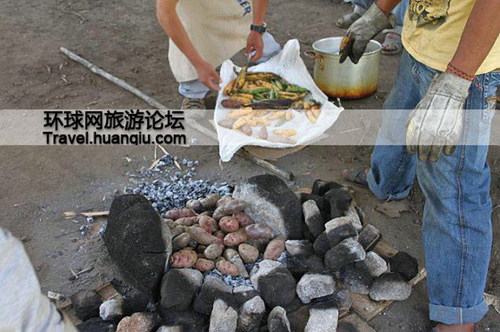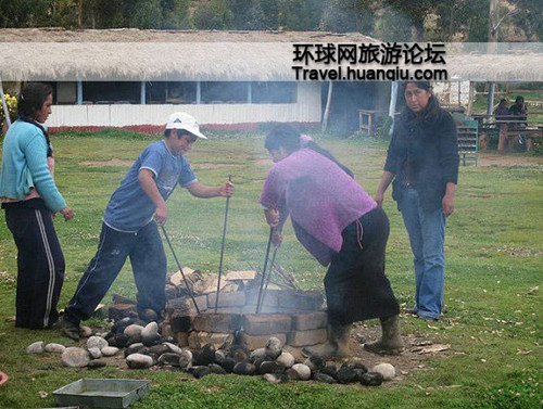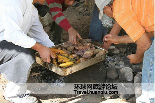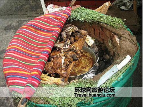 “大地之锅”顾名思义就是以大地为锅。今年美食节上做这道大餐的师傅是来自秘鲁胡宁省曼塔罗山谷古塔拉家族的4名成员,其中家族元老、68岁的赫苏斯·古塔拉是秘鲁著名的“帕恰曼卡大师”。