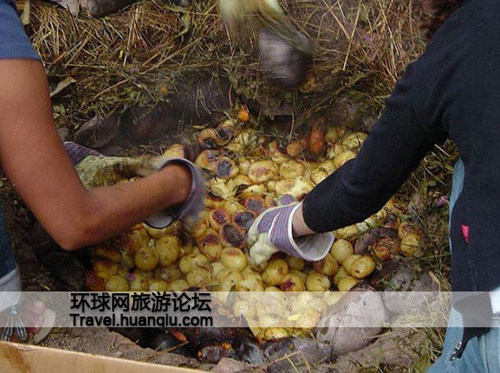老人说,根据印第安人的习俗,一般在欢庆传统节日、生孩子、洗礼、结婚、乔迁等喜事时,大家会一起做帕恰曼卡。做菜时,男人们负责挖坑、挑拣石头和炭火,女人们负责腌制肉类、准备各种调料,孩子们包玉米粽。食物烤好后,人们围坐在一起吃刚“出土”的美味,其乐融融。