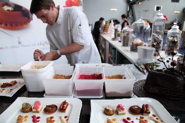 5月8日,在比利时布鲁塞尔美食节上,一位甜点师制作精美的小吃。