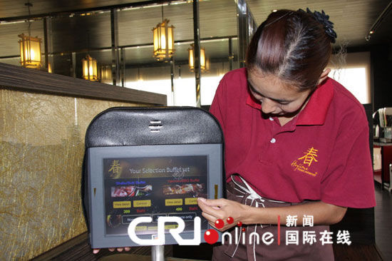 位于泰国首都曼谷的这家机器人餐厅并不在市中心的黄金地段,但是每天前来就餐的客人仍然源源不断,许多人慕名前来体验店里的特色招牌——机器人点餐服务。虽然餐厅在2010年3月才刚刚开业,但是已经成为曼谷市年轻人热捧的时尚餐厅之一。该餐厅店长妮塔雅女士介绍说,机器人服务员是店里的主打特色,除此之外,店里还采用了完全自助的电子屏幕点菜方式,让顾客们能够快捷便利地享用美食。她说:“我们这家店的主要特点之一是我们让客人自己在电子牌上点菜,点完菜之后机器人服务员就会自动给每桌上菜。来这里的孩子们都特别喜欢机器人服务员,因为很新奇,很多大人也非常喜欢,这也是泰国第一家机器人餐厅。”