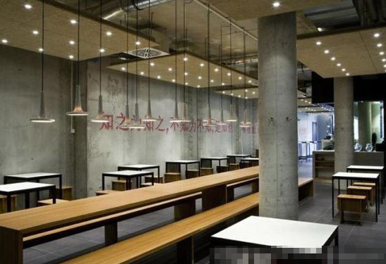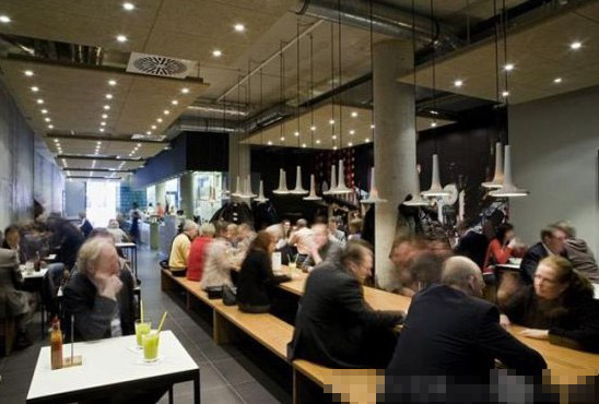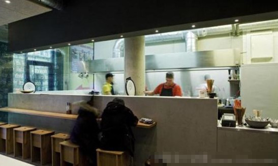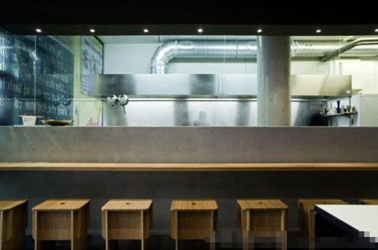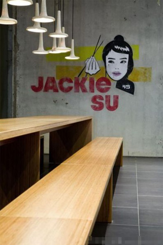 “城市街头厨房”是这个位于市中心的小餐馆的座右铭。现在让我们一起进入这个现代的内部结构感强烈的亚洲街头厨房去参观。微笑地拿着筷子的Jackie Su 标志,鲜红的亚洲字、大体块的天花板、空调管以及混凝土墙都强调了城市的艺术氛围。