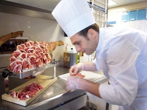 目前路易十五餐厅的首席厨师是弗兰克-克鲁提(FranckCerutti),他跟着阿兰-杜卡斯工作多年,如往常一样,他在中午的时分巡视厨房。时不时地对着某道菜说上两句,有时也会亲自动一下手。在厨房的一角,有一个小小的监控室,据说阿兰-杜卡斯过来的时候就坐在那儿观察不同房间的厨师工作。