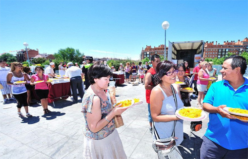 西班牙马德里市比利亚韦德区在当地夏季传统节日期间举办“千人海鲜饭”活动。图为手捧海鲜饭的民众笑逐颜开。