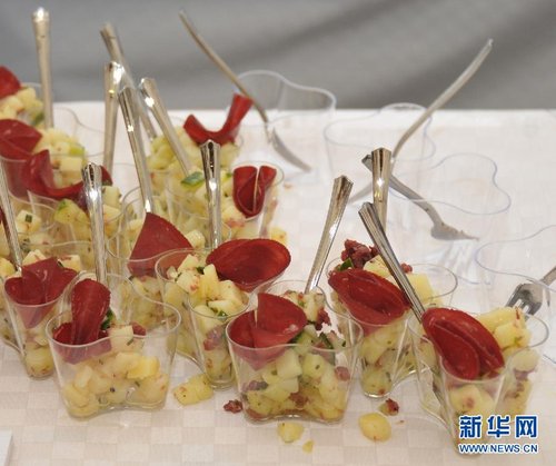 8月26日,首届芬兰美食节上展出了一些冷燻驯鹿肉,供人们品尝。