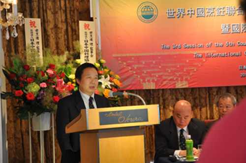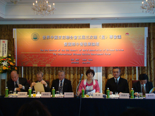世界中国烹饪联合会五届三次理(监)事会于2010年6月29日在日本东京大仓酒店隆重举行,会议有来自14个国家和地区70余人参加。会议由世烹联会长杨柳女士主持,大会听取并审议了秘书长尚哈玲女士关于“世烹联五届三次理(监)事会工作报告”;名厨专委会常务副主任高炳义“关于世烹联名厨专业委员会近期工作安排”。会议还通过了秘书处“关于调整、增补理事的提议”以及四个国家和地区20个单位的入会申请。理(监)事们对世烹联一年来的工作给予充分肯定,认为秘书处同志们在一年中做了大量的工作,特别在发展会员上填补了部分空白,增加了会员凝聚力。会议期间,香港、台湾、法国、澳门提出申请承办明年理事会,经理事会研究表决同意由台湾承办2011年度世烹联理事会。