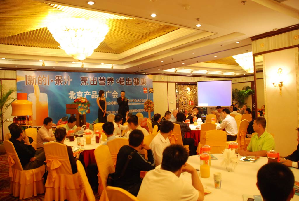图一:新的果汁“烹出营养 喝出健康”北京产品推广会会场