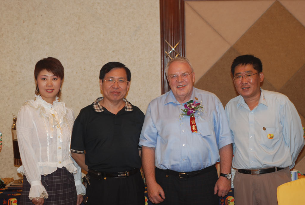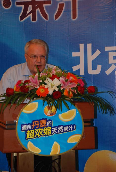 图二:,新的宝食品有限公司总经理甄新先生向来宾介绍新的果汁的历史