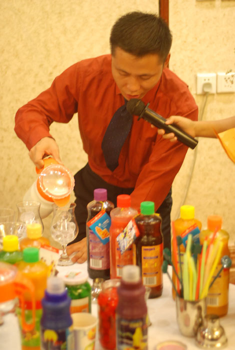 图六:调酒师用新的果汁调出美味的鸡尾饮料