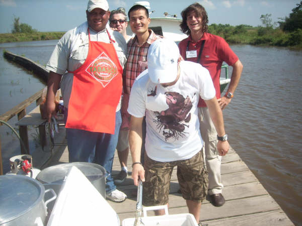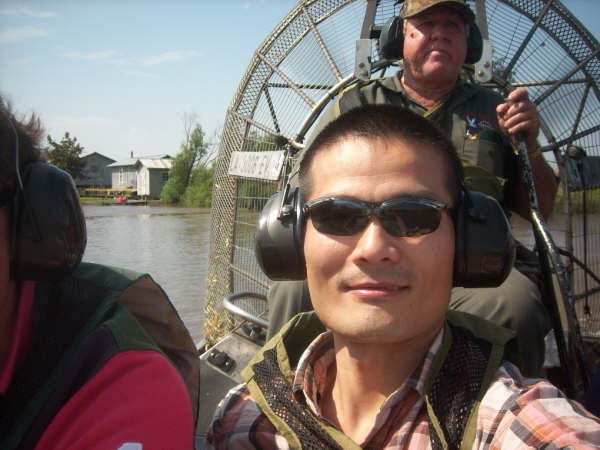 9月18日早晨,大家吃过早餐并退房后就来到了附近的一条河边,河的名字我忘记了,河边停着两艘小型游轮,我们坐上游轮沿着河道朝着Mexico gulf方向驶去,我们的目的地是接近在 Mexico gulf的一大块沼泽地。这是我第一次坐沼泽地专用的风力推进的快艇,也是第一次边吃当地的大闸蟹边听真正的美国乡村音乐和美味可口的路易斯安娜OYSTER。让我的心情仿佛飞了起来,尽情地享用美食,音乐,完全的无拘无束。直到下午才乘大巴车去新奥尔良,我们酒店登记后,大家休息了一会儿,我们又开始品尝新奥尔良的美食,我觉得最有特色的就是他们的GAMBOO汤了,据说只有在新奥尔良才能尝到纯正的GAMBOO,另外小牛肉配蟹也是一道美味。