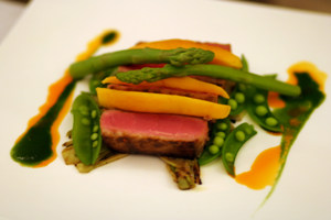 菜肴特色: 极富营养价值和极其时尚的烹饪运用,口感清鲜鲜甜,间或爽口醒神,果蔬的搭配使得菜肴成为夏令美食的首选,造型写意而又有涵义,低热量,富含蛋白质,非常适合运动员赛事中的体能恢复。