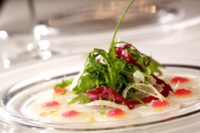 CRU扒房 咖喱柠檬扇贝配菊苣,豆瓣菜,小茴香色拉
