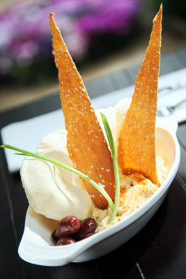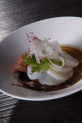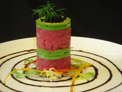 菜肴特色: 口感清鲜浓郁,营养丰富,融合海洋生物蛋白和大豆蛋白,植物果仁的不饱和脂肪,有东方鱼生的形制,也有西式生拌挞挞的个性,结合多种果蔬,令人品尝美味的时候,味觉不断地被新鲜多元的元素所唤醒。有写意的赛艇创意,也适合运动员调剂膳食的选择。