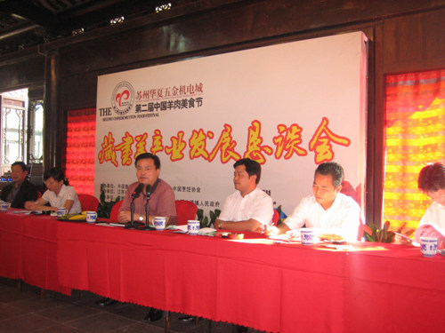 本届中国羊肉美食节由中国烹饪协会支持,中国畜牧业协会主办,江苏省农林厅、苏州市农林局协办,苏州市吴中区人民政府、苏州市吴中区木渎镇人民政府承办的。全国政协常委、民盟中央副主席、中国畜牧业协会会长张宝文,中国烹饪协会副会长沈思明,江苏省委副秘书长胥爱贵,副市长周玉龙,苏州市政协副主席陈振刚等领导出席了开幕式。开幕式上沈思明副会长宣布了,中国烹饪协会授予苏州木渎镇“中国羊肉美食之乡”的称号,并授牌。开幕式还上演了一场精彩的文艺晚会,用艺术的形式阐释了我国羊肉美食文化。著名主持人陈辰、林海,实力派唱将腾格尔、祖海、关喆等歌手也到场助兴。