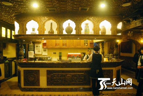 5月6日傍晚,记者在米拉吉友好店体会到了120位工匠悉心装修风格。这是一个占地2000多平方米的,具有浓郁伊斯兰风格的餐厅。客人们也许被这沉重而独特的装修所征服,没有了以往餐厅的喧闹,只看到人们时不时地低语交谈。
