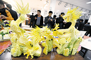 12月6日,由天津市商务委、市劳动和社会保障局等共同主办的“第五届饭店、餐饮系统服务职业技能大赛”5日在天津举行。在烹饪项目比赛中,选手亮出拿手绝活,蓑衣黄瓜、面塑、蛋糕裱花等各尽技巧之能事。