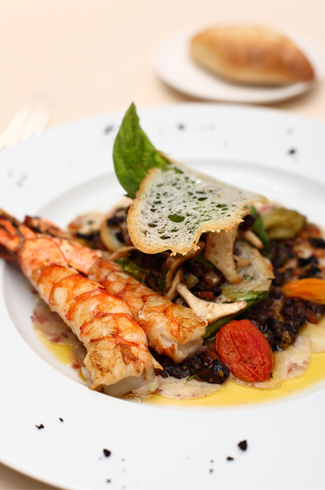 8楼的餐厅并不大,只有50个座位,略显得拥挤,但幸好用足了玻璃,就餐区的三面落地玻璃墙将此处营造成一处空中楼阁,又好似挺进上海喧闹中的一艘飞船,而愈到暮沉时,愈是惊心动魄,楼宇间泛起的霞光为蔚蓝覆盖,而眼前的食物也仿佛在陆离的光彩中变换着调性与性情,口舌之间总有些不同。法餐依然是传统的,地中海的路子,南部的风格,但用了许多的本地材料,其实这在上海西餐界早已流行,诸多原因中,减少运输的能源消耗,维持低碳应是重要一点吧。口味并不见得为中国人改变,毕竟大家造访红房子,便是想在世界的另一头触摸真正的法国。