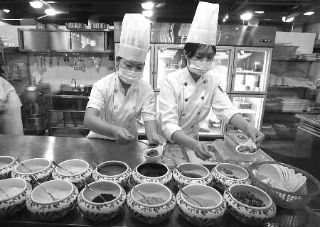 记者在小滨楼看到,整个装修以陪都风格为主,青砖流水、古色古香。在小滨楼主厨的是进入渝中区饮食公司50年的特级厨师蔡雄。