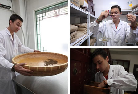 洋小伙顶鹤年一边说着,一边在师傅的指导下摆弄着中药材,而后又像模像样颇为老道得操作起了中药房中的几样工具。当问起他为何那么执着的选择鹤年堂来学习的原因,小伙子颇为自豪的问起记者:"你知道鹤年堂的老掌柜是个诗人吗?我们可是朋友!"这句话说得更让人摸不着头脑。