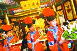 这里的菜品主要是一些仿宫廷菜,其中的宫门献鱼、油攒大虾、凤尾鱼翅等最有特色;宫廷小点像豌豆黄、小窝头、肉末烧饼等很招人爱。年夜饭可以选择根据“满汉全席”精选的菜式,享受一下以前在宫廷中才能吃到的美味。