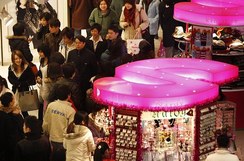 就在新年倒计时迎来2009年第一缕曙光的时候,上海市南京路、淮海路、徐家汇、浦东陆家嘴等商圈的商场、家电卖场、连锁店也实现了跨年销售的开门红。