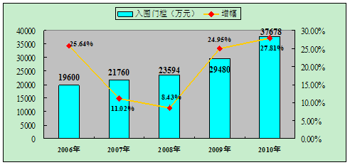 图2 2006-2010年度餐饮百强企业入围门槛比较(单位:万元)