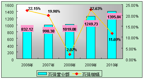 图1 2006-2010年度百强餐饮业营业额情况(单位:亿元)