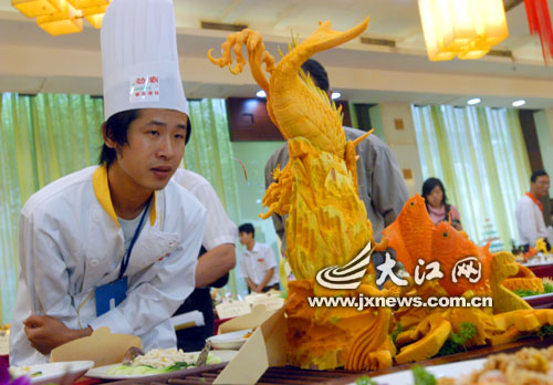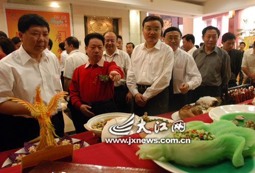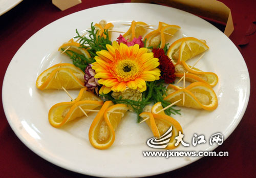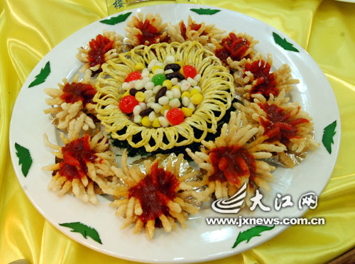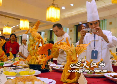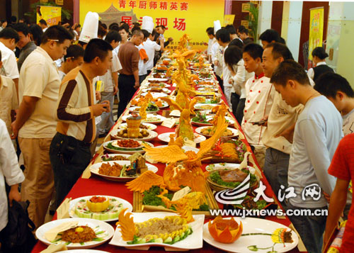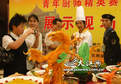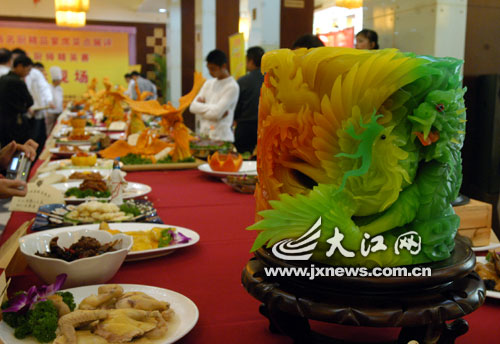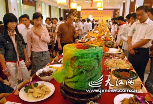 精美的菜肴吸引了众多美食爱好者参观(大江网记者 姚海南 摄)