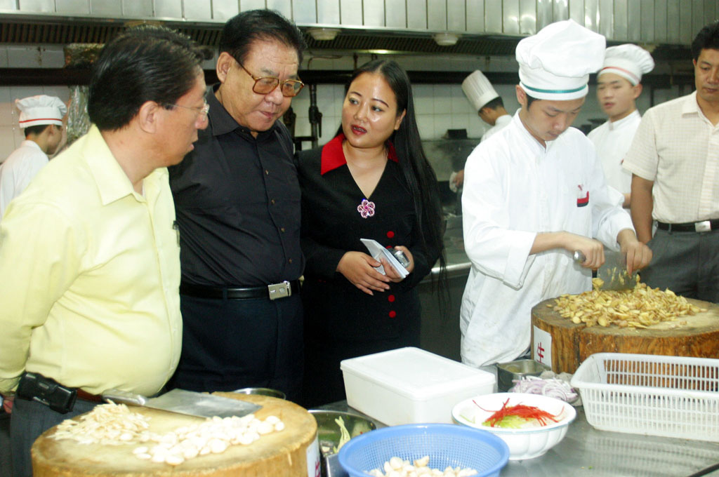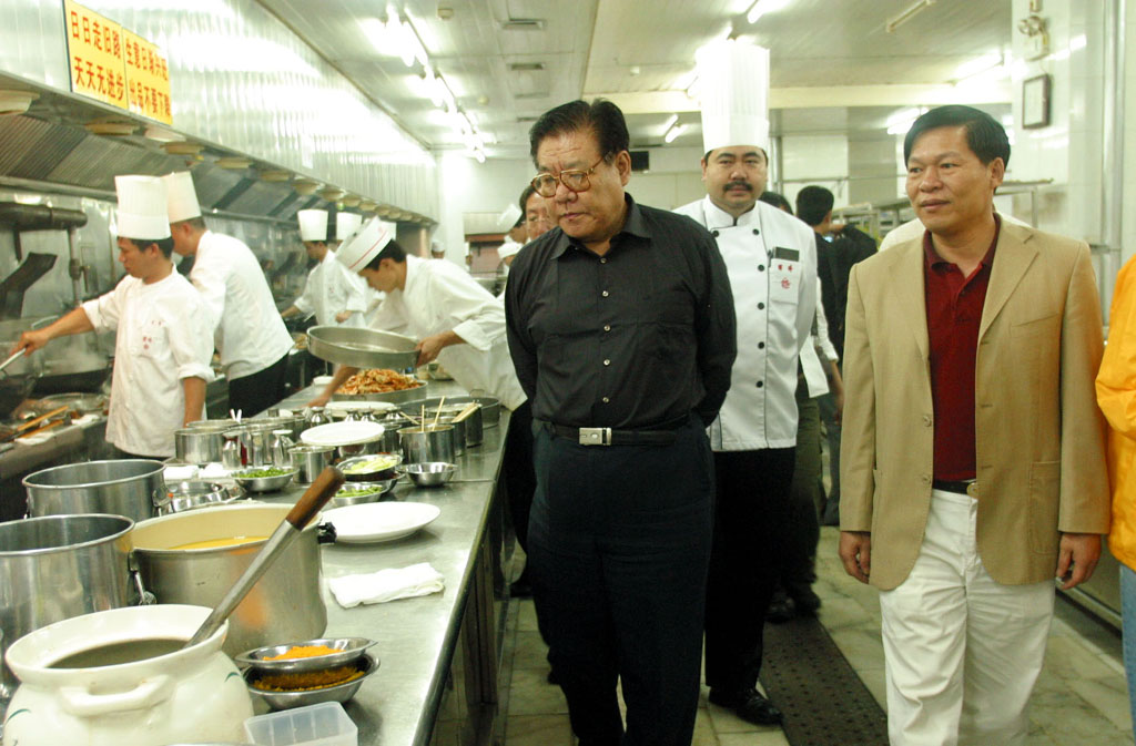 访问组来到正在举行大型婚宴的北京顺峰餐饮娱乐有限公司阜成店,一进店便直奔厨房,大家看到厨房内工作井井有条,卫生规范条文在各个工作环节都有明示,卫生规范的实施没有因工作繁忙而打折扣。据林锐均总经理介绍,顺峰集团正在全国所属20余家企业中积极落实“卫生规范”,并号召各企业争当“卫生规范”实施样板。据了解,顺峰集团为了解决餐具人工处理的卫生问题,已在所属各店全部安装了先进的洗碗设备,保证餐具清洗和卫生全部达标。林锐均总经理给访问组算了一笔帐:洗碗设备一次性投入大了些,但使用后节约了劳动力,减少了劳动量,而且使餐具卫生有了保障,花钱买了一个对消费者负责,值得。苏秋成会长认为:这种算账方式,值得餐饮企业的领导者们学习,餐饮企业在卫生保障方面的投入是自己社会责任感的体现,也是树立品牌的必要投入,获得的是市场长远效益,社会肯定会给他回报。
