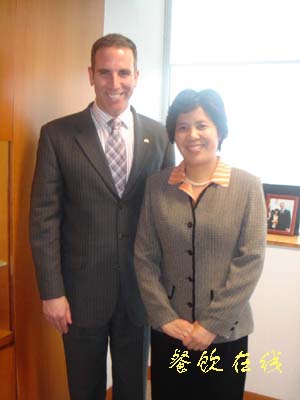 杨柳常务副会长(右一)在四届二次理事会期间考察麦当劳中国总部,并会见麦当劳公司首席市场推广长罗凯睿