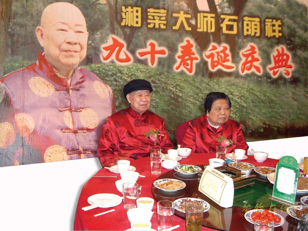 今年已90高龄的石荫祥是长沙人。15岁进入长沙市曲园酒楼从师史玉和。从上世纪五十年代开始到九十年代,毛主席、刘少奇、江泽民等来长沙视察工作,都由他亲自掌勺,烹饪正宗湘菜,深得他们的赞赏。1991年,湖南省政府授予他“湘菜大师”称号,为湘菜大师第一人。