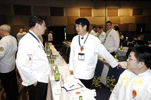 中国烹饪协会王家根副秘书长(左三)与新加坡代表亲切会面
