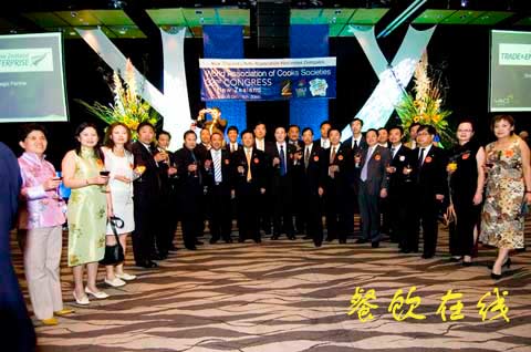 由中国烹饪协会苏秋成会长任团长的中国烹饪协会申办代表团一行53人于3月11日从北京出发,12日中午抵达新西兰奥克兰市,与此前从西安市经澳大利亚访问后抵奥克兰的西安申办代表团一行28人会合,80余人组成强大阵营的中国代表团在开幕酒会上显得格外引人注目,中国对第34届世厨联大会志在必得的进取精神,深深感染了各国来宾。
