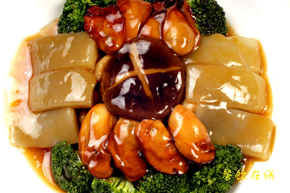 瑞群是山瑞(淡水龟的一种)的群边,有较高的胶原蛋白。蚝干是生蚝晒干又经温制处理的原料,其特点高蛋白、高铁、高锌、少脂肪。加入五花肉即可增加脂肪的含量。烹调中加入适量的炸蒜头及西兰花,对中老年机体的免疫功能有帮助。