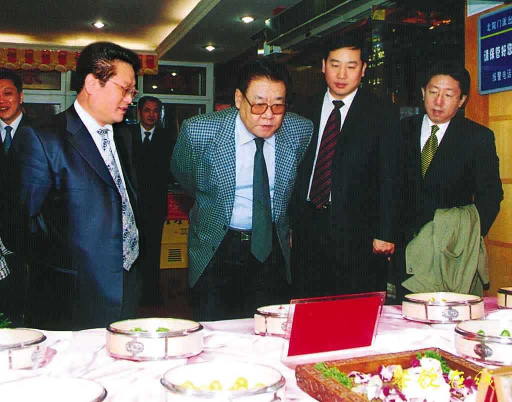 中国烹饪协会会长苏秋成(左二)在西安饮食集团董事长刘龙宇(左一)总经理王一萌(右二)的陪同下考察西安餐饮业的发展情况