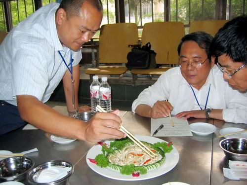由市职业技能竞赛委员会、市职业技能鉴定指导中心联合举办的2008柳州市烹饪职业技能大赛,昨天(7月9日)在市第一职业技术学校举行。本次比赛以“展示烹饪文化,倡导健康美食”为主题。来自我市15家饭店(酒店)的50名选手参加了此次比赛。
