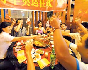 “凡是猜中中国队获得奥运金牌项目和运动员的顾客,我们都将进行啤酒免费。”奇火锅老板余勇称,正在部署和落实奥运期间活动,希望能以“奥运狂欢”的互动节目,吸引更多顾客就餐。