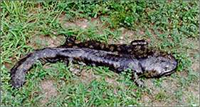 大鲵,俗称“娃娃鱼”,属国家二级保护野生动物。因其稀有珍贵、价格高昂而成为黑市的俏货。常德市森林公安分局近日查获了一起无证运输野生动物案件,发现了一条体长达98厘米的特大“娃娃鱼”。目前,这条“娃娃鱼”被 放养在常德市动物园。专家呼吁,人们应该放弃贪食“野味”的畸形消费观念,遏制偷猎、贩运野生动物的活动。