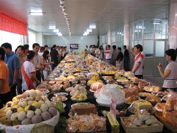 面食品种琳琅满目,与会代表纷纷驻足观看拍照