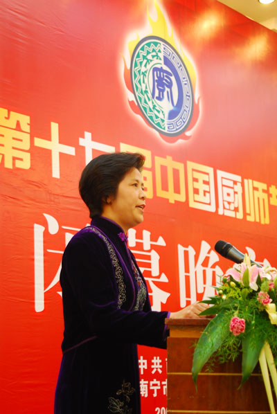 由中国烹饪协会和南宁市人民政府联合主办的第十七届中国厨师节,在方方面面的通力合作和大力支持下,取得了圆满的成功。据初步统计,本届厨师节的各项活动,吸引了来自海内外的众多人士参加,也得到了南宁各族人民群众以及邻近城市人民群众的热烈欢迎和积极参与。在本届厨师节即将圆满地落下帷幕的时候,我谨代表中国厨师节组委会向为本届厨师节的组织做了大量工作的南宁市委、市政府及各相关部门,向海内外的相关行业组织和广大餐饮企业表示最衷心的感谢!向前来参加厨师节的全国各地各级政府部门领导,向各地代表团的每一位代表表示最亲切的问候和由衷的感谢!向为本届厨师节提供了极大支持和帮助的各有关单位表示最崇高的敬意和诚挚的感谢!向以极大的热情对本届厨师节给予高度关注,进行了大量报道的全国各地新闻媒介的朋友们,表示最由衷的谢意!