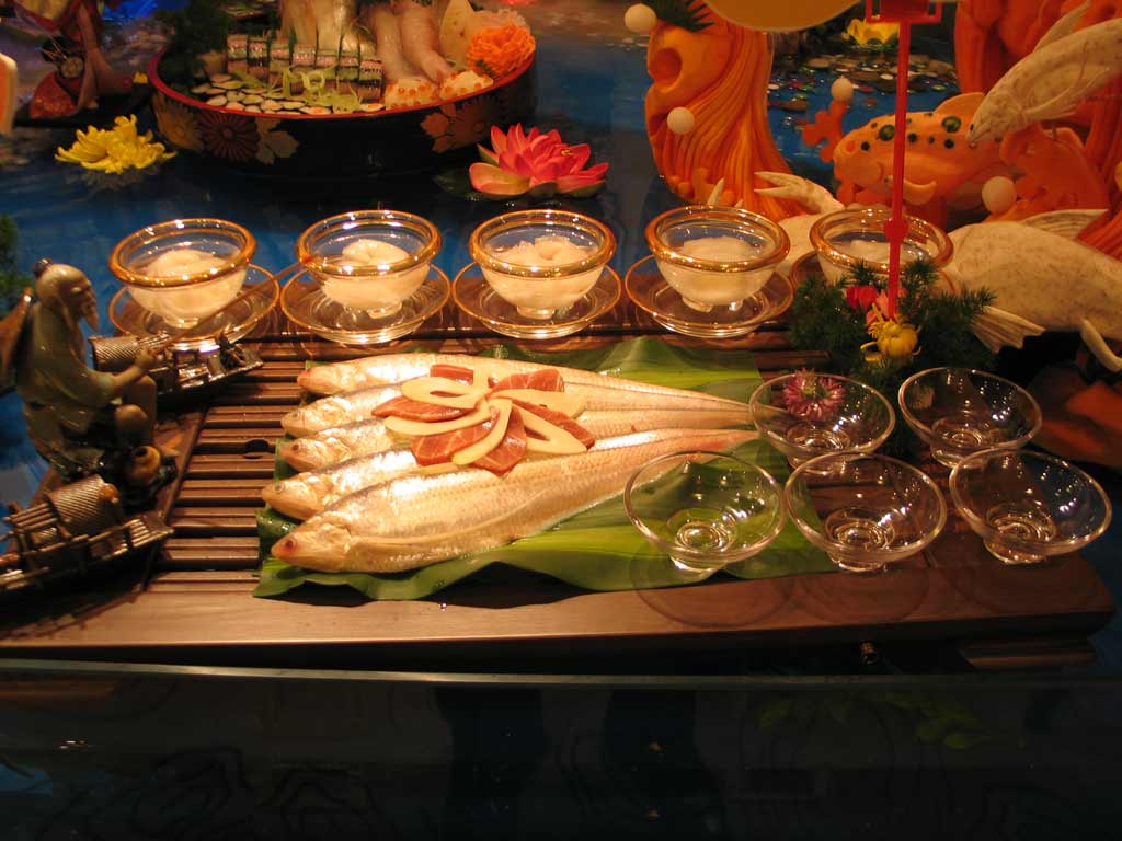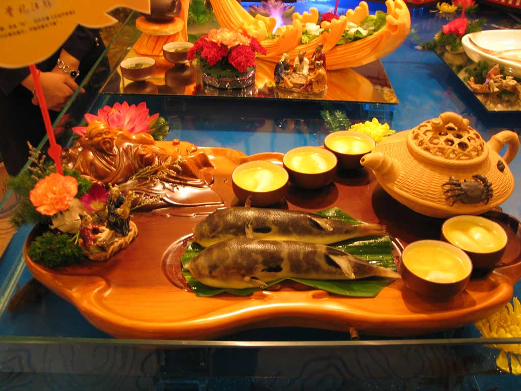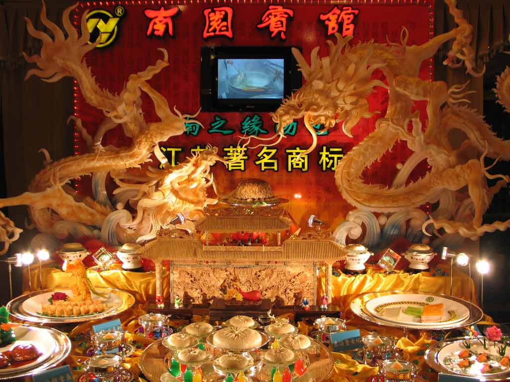 举行美食展示和品尝活动,是靖江本届美食节的主要活动之一。美轮美奂的美味佳肴、原汁原味的农家小吃、生动逼真的美食造型……来自靖江国际大酒店、鸿运酒楼、百盛大酒店、南园宾馆、扬子江大酒店等20多家酒店、酒楼、食品生产企业摆出的一个个美食展台,让与会者大饱眼福、大饱口福。“牧马春江花月夜,汤包江鲜靖江情。”靖江国际大酒店摆出的美食犹如一幅色彩斑斓的油画,在小桥流水、亭台楼阁掩映下,贵妃江豚、兰花鮰鱼、酒酿鲥鱼等10多道江鲜、汤包特色菜肴尽展风姿。靖江餐饮名镇季市镇摆出的一桌展台尤其引人注目,老汁鸡、茵糕、大炉饼、皮卷、狮子头、脆饼、酒酵馒头、酒酵烧饼,处处传递出浓郁的乡土风情。靖江骥洋食品公司推出的羊心、羊耳、羊蹄、口条等几十种羊肉美食,“羊”味浓浓。不少嘉宾认为,美食节上的展台全是精品,反映了靖江餐饮企业的实力,同时反映出靖江人对美食文化的深刻理解和独具的匠心。
