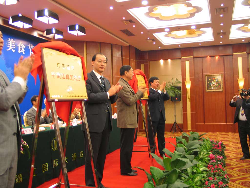 在3日上午的开幕式上,江苏省委原副书记、省烹饪协会名誉会长、省文联主席顾浩,中国烹饪协会秘书长冯恩援,商务部驻南京特派员陈锋等领导专程前往祝贺并发表了热情洋溢的讲话。经中国烹饪协会对靖江河豚江鲜菜和汤包进行调研考察和审核认定,决定授予靖江“中国·江鲜菜之乡”“中国·汤包之乡”的荣誉称号。开幕式上,有关领导分别为“中国·汤包之乡”“中国·江鲜菜之乡”揭牌,随后,命名了靖江市首批餐饮名店、汤包名店和餐饮名镇、餐饮名街,并举行了“中国·江鲜菜之乡”“中国·汤包之乡”纪念邮册和明信片首发式。