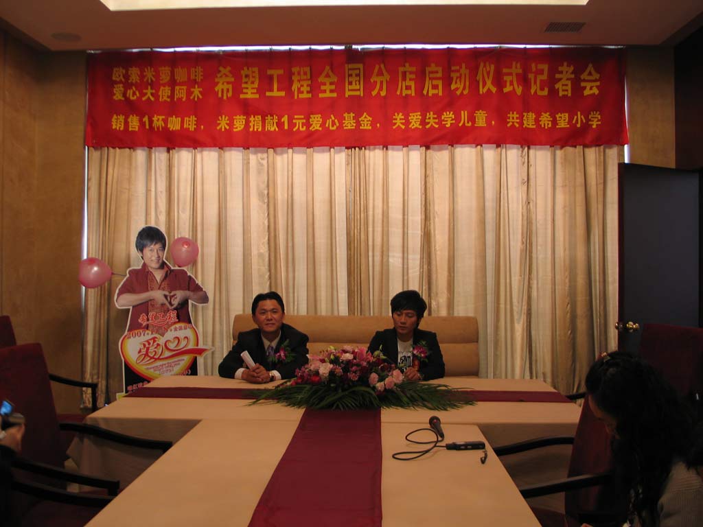 台湾著名连锁品牌欧索米萝咖啡,2007年11月8日在其北京左家庄旗舰店开业仪式上,隆重启动以“咖啡情,公益心,一杯咖啡100分爱心”为主题的关爱失学儿童大型公益行动。该行动计划在全国修建100所希望小学,通过每卖出一杯咖啡即捐出一元钱的方式筹集资金。因演唱《有一种爱叫作放手》走红全国的歌手阿木,担任米萝公益行动的爱心大使,本次爱心捐助也从阿木消费第一杯咖啡自动存储一元善款开始,之后米萝各分店每成功销售一杯咖啡,都将自动为顾客存储并捐献“1元”爱心至欧索米萝咖啡希望工程爱心基金。
